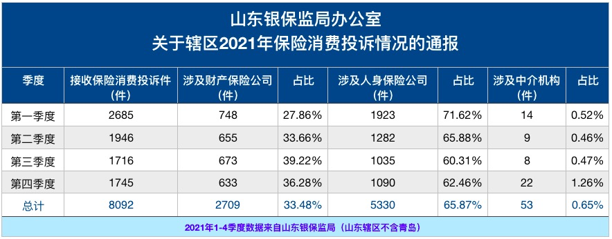 2021山东保险业投诉逾8000件 人身险纠纷明显高于财产险